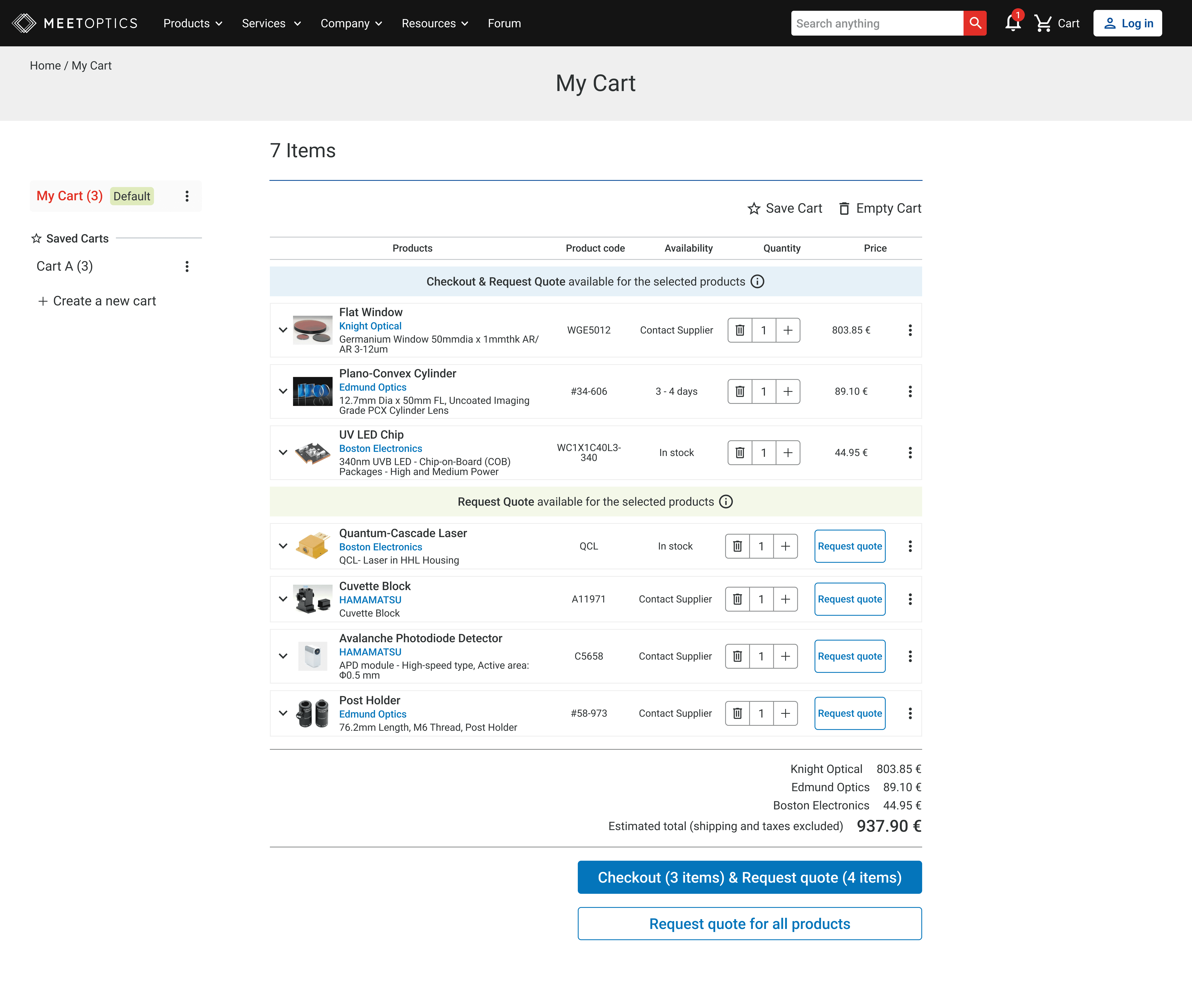 Meetoptics is a B2B marketplace that allows engineers and procurement specialists to compare and purchase photonics products from multiple suppliers.